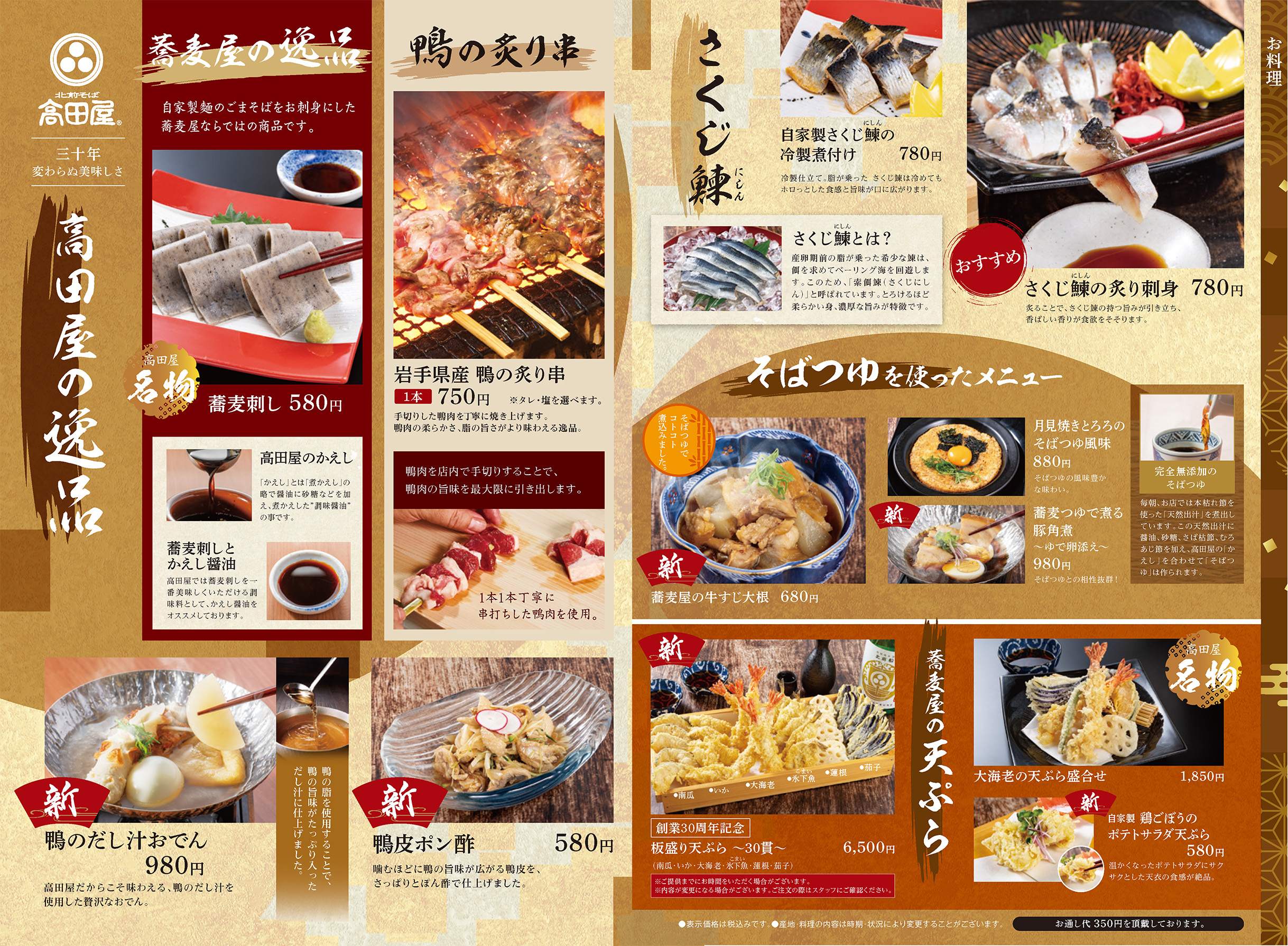 店内製麺の美味しい蕎麦を中心に3つの顔を持つ、高田屋のブランド展開